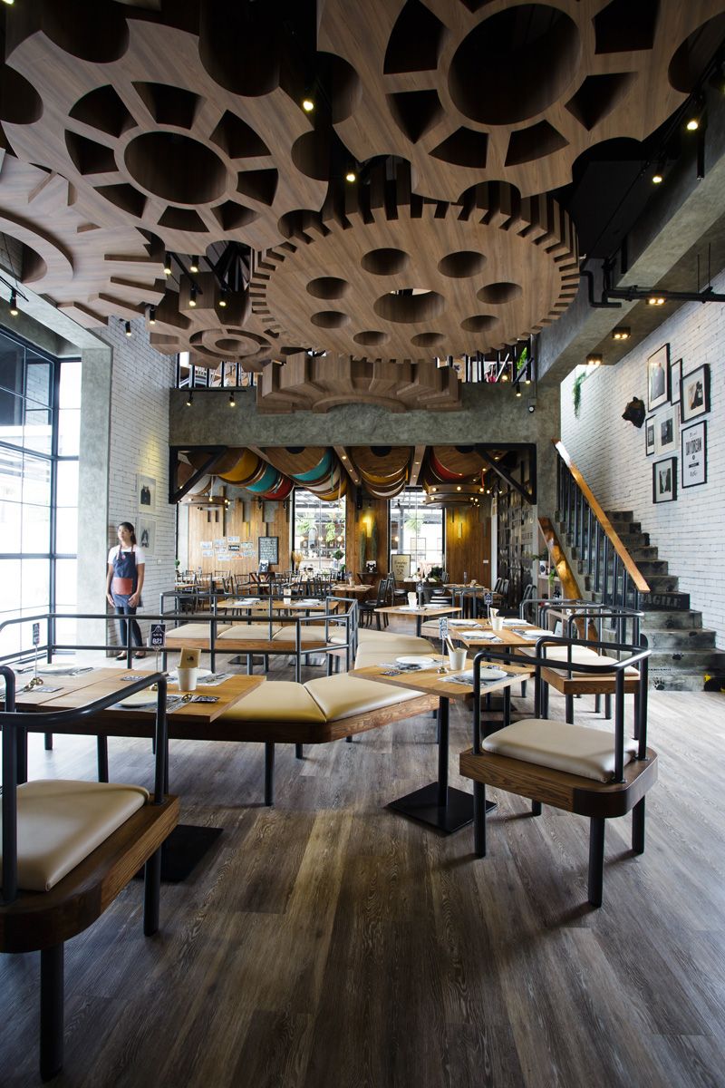 Nhà hàng này được trang trí bởi các loại thảo mộc treo tường và cả trần nhà khiến thực khách có cảm giác như đang ở trong một khu nhà kính hoặc vườn cây.