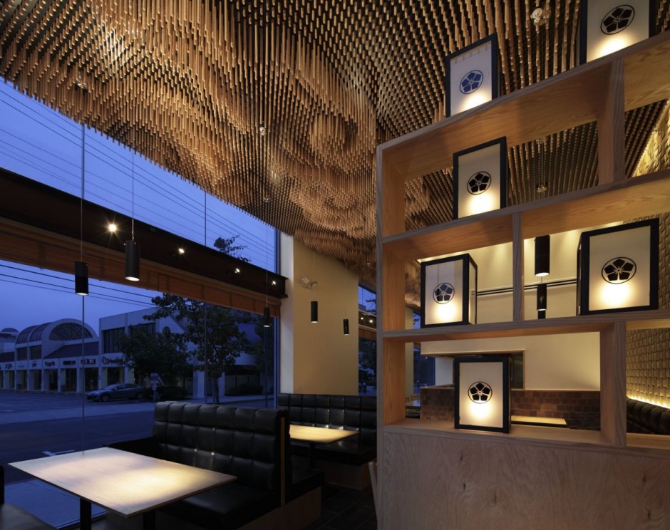 Khi thiết kế nhà hàng Tsujita ở Los Angeles Takeshi Sano đã sử dụng 25.000 gậy gỗ để trang trí trần nhà. Sự sắp đặt có chủ ý giúp thực khách cảm giác như ngồi dưới một bầu trời đầy mây.