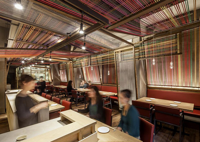 Nhà hàng Pakta nằm ở Barcelona và cung cấp ẩm thực Nhật Bản-Peru. Thiết kế nội thất của nó được lấy cảm hứng từ những khung dệt truyền thống của Peru, tạo ra một cái nhìn sống động và đầy màu sắc.