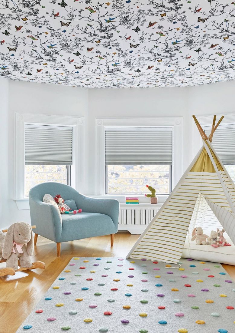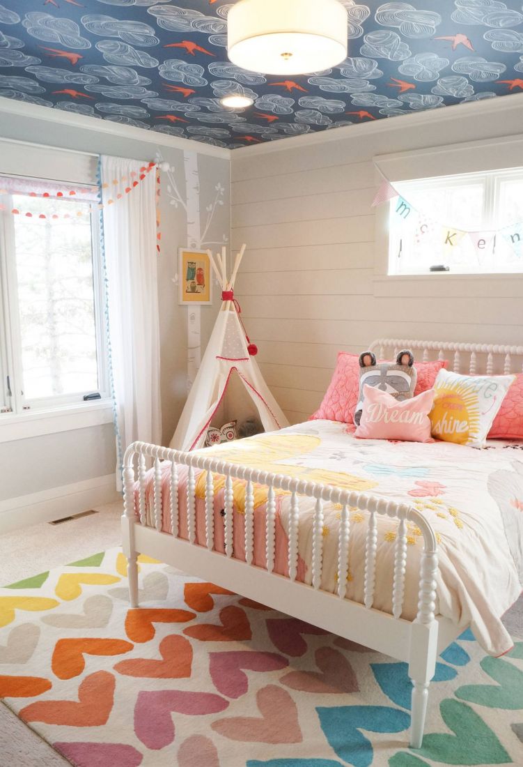 Điều khó khăn nhất khi trang trí trần nhà bằng giấy dán tường là bạn phải nghiên cứu và lên ý tưởng sẵn. Thông thường, chúng sẽ để nó theo một cách tự nhiên nhất đó là màu trắng mang lại sự thoải mái. Tuy nhiên đối với phòng trẻ em thì cần thêm một chút sinh động, vì vậy hãy lựa chọn giấy dán tường mang nhiều họa tiết, nhiều màu sắc để giúp không gian của trẻ trở nên linh hoạt và trẻ trung hơn nhé.