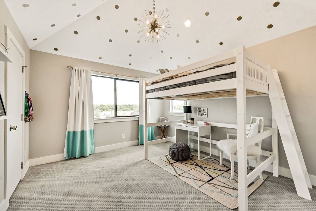 Trần nhà mang họa tiết đáng yêu khá phù hợp với không gian có giường gác xép này.
