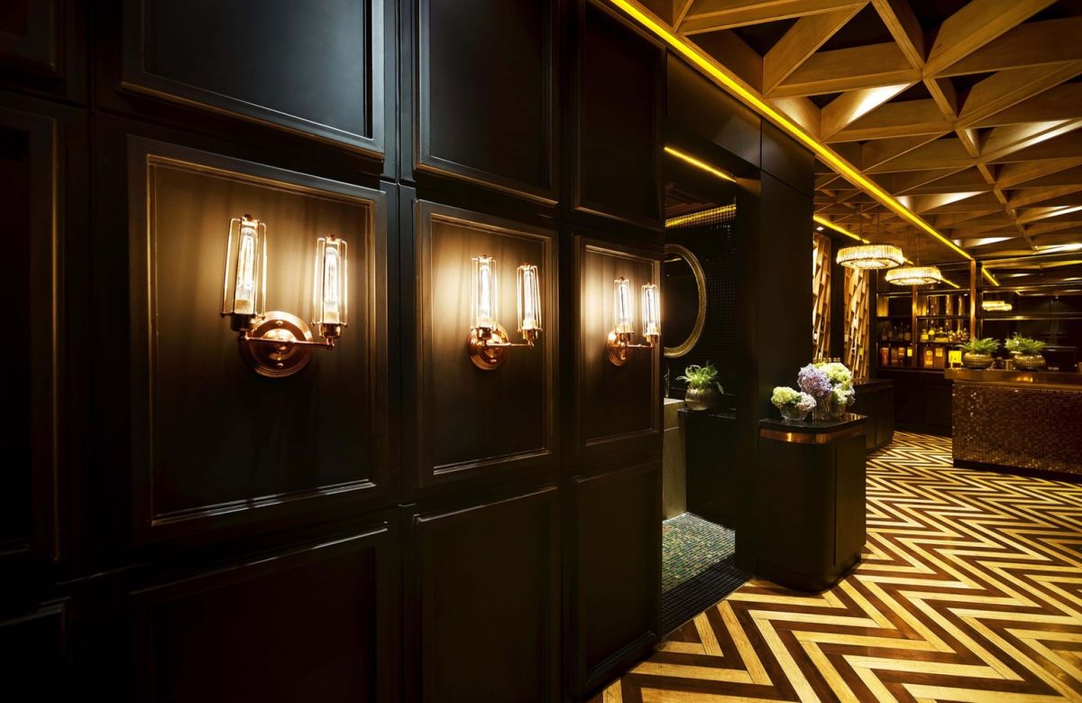 Điểm nhấn của không gian này chính là màu vàng đồng được dùng xuyên suốt. Điều này khiến phòng bar không xa rời với thiết kế của cả tòa nhà mà còn đen lại cảm giác mạnh mẽ, thanh lịch.