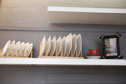 Chiếc kệ đĩa độc đáo được tận dụng như vật trang trí cho gian bếp