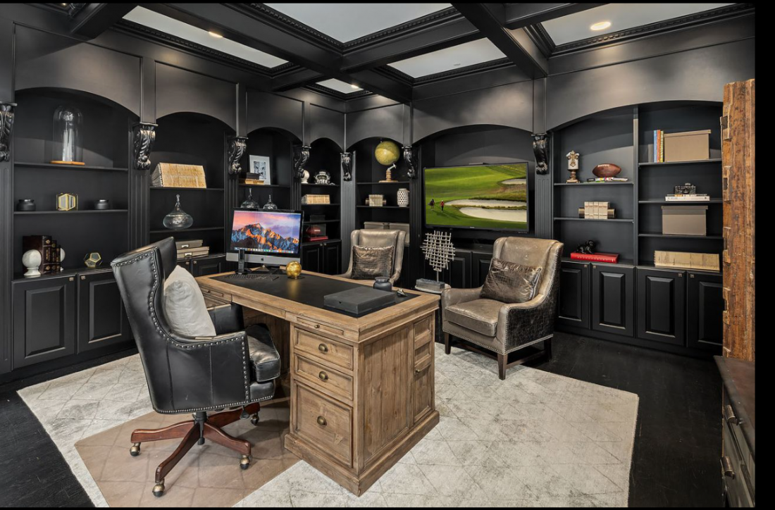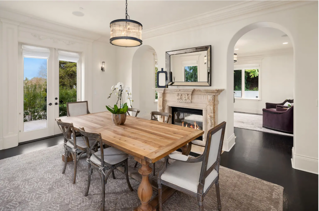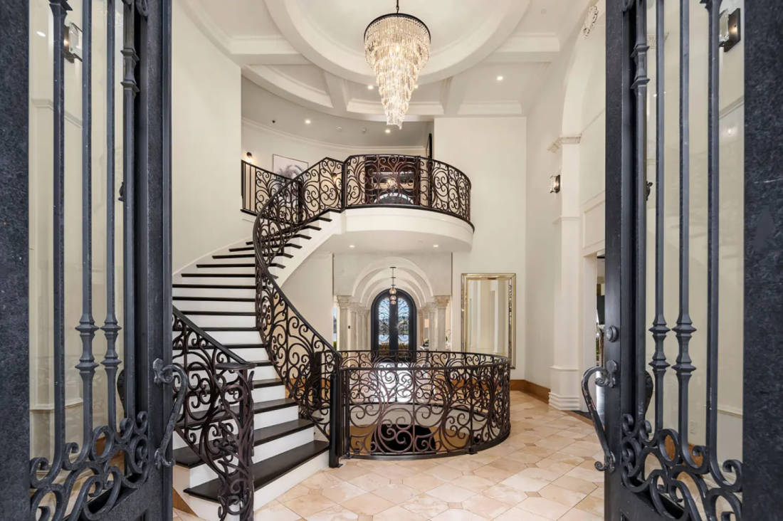 Dinh thự có lối vào chính thức với trần nhà cao 6,1m và cầu thang bằng sắt rèn. Nhà bếp lớn, các khu vực ăn uống hoàn hảo cho bữa tối thân mật với sức chứa lên đến 50 người. Cửa gỗ chạm khắc theo yêu cầu. Phòng ngủ chính cũng có khu vực tiếp khách hình tròn nhìn ra hồ.