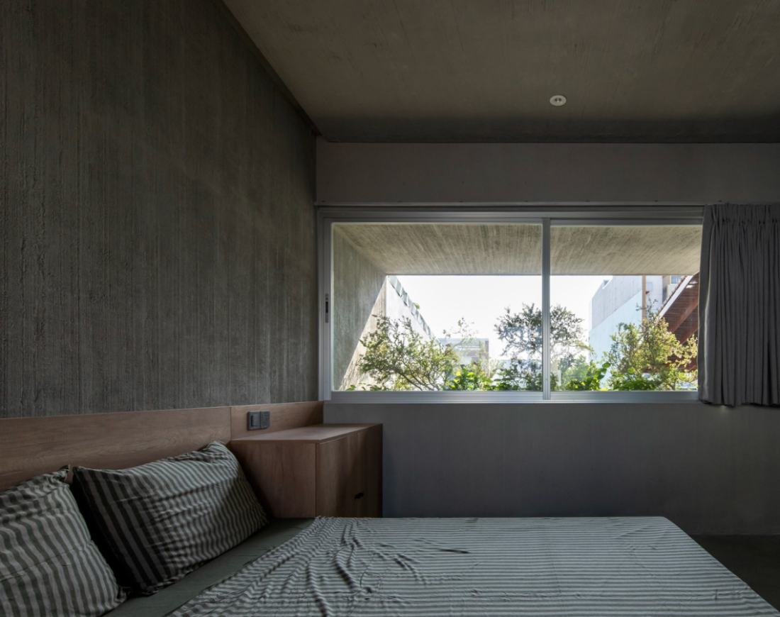 Ngoài ra, phòng ngủ ở tầng 1 có hướng nhìn trực tiếp ra khu vườn – đây sẽ là nơi dành cho bà ngoại ở lại khi đến thăm con cháu trong nhà.
