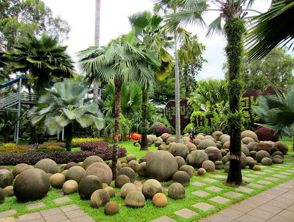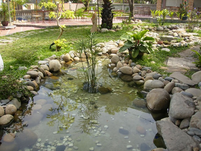 Đá cuội kết hợp với một số loại đá khác tạo được điểm nhấn cho không gian sân vườn.