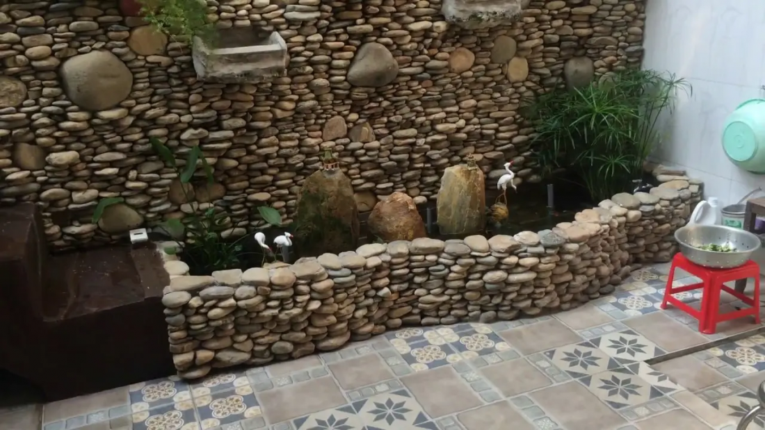 Đá cuội được sử dụng để làm thác nước mang lại cảnh quan tự nhiên.