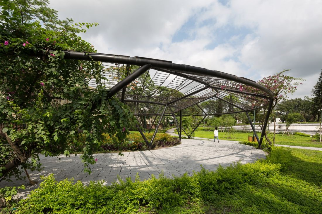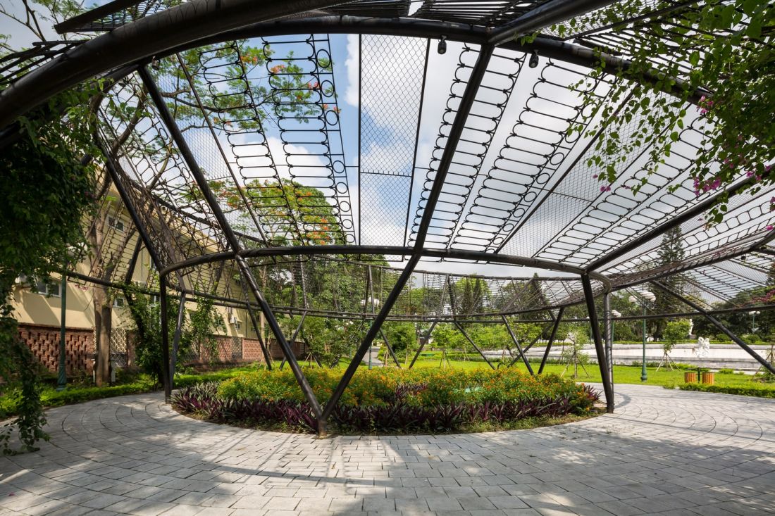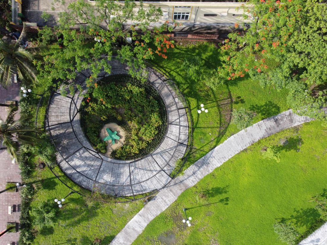 Khu vực vòng nguyệt quế: có cấu trúc gồm 3 vòng tròn lệch tâm, trong đó hai vòng bên cạnh, mỗi vòng có sáu điểm tiếp xúc luân phiên, vòng ở giữa cao và nghiêng dần từ trên xuống dưới, bao quanh là cây và hoa. Trên cùng là hàng rào sắt cũ có hình dạng như chiếc lá trên cành uốn thành vòng nguyệt quế lớn, mang thông điệp tôn vinh sự tái sinh để con người với thiên nhiên gần nhau và gắn kết nhau hơn.