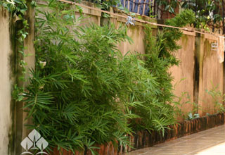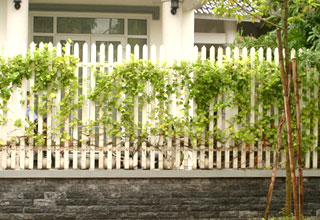 Nếu nhà bạn có tường chạy dọc theo mặt tiền làm từ những nan nhỏ ghép lại với nhau (màu trắng), bạn có thể cho cây leo vào tường. Nên chọn cây vạn niên thanh. Khi đó, sự đan xen màu nhanh nhạt của lá cây và trắng sẽ làm nổi bật ngôi nhà của bạn. Đây cũng là cách tạo độ thoáng cho căn nhà, căn nhà vừa mở ra bên ngoài nhưng cũng rất kín đáo. Hoặc bạn có thể cho một cây hoa leo ở phía trên của tường rào để tạo điểm nhấn cho không gian phía trên.