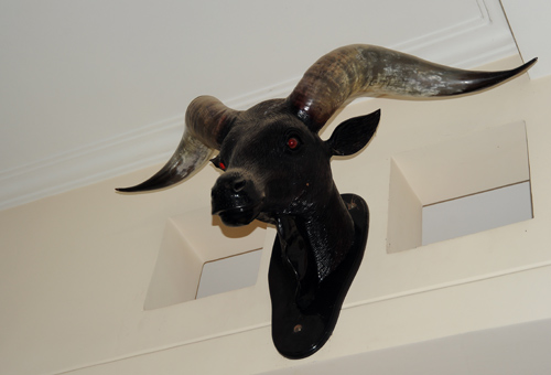 Trên tường nhà Minh Béo treo một đầu bò rất ấn tượng.