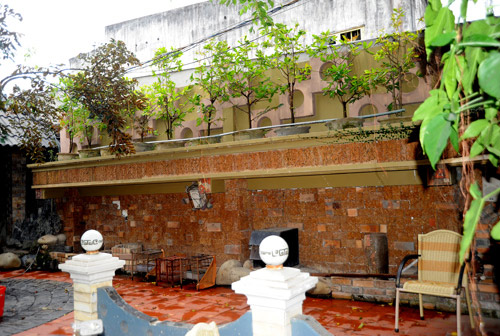 Từ ngoài cổng đến cửa chính ngôi nhà của Minh Béo để khoảng cách gần 20 m. Bên phải là một căng tin mini, bên trái là "mái chòi" cao cấp dành để tiếp khách đường xa.