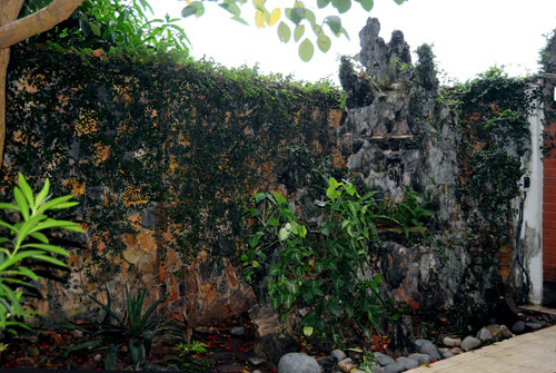 Vào sâu bên trong là hành lang và bờ tường rêu xanh rất bắt mắt. Từ vị trí này, khách có thể ngồi thư giãn ngắm cây xanh và nghe tiếng chim hót.