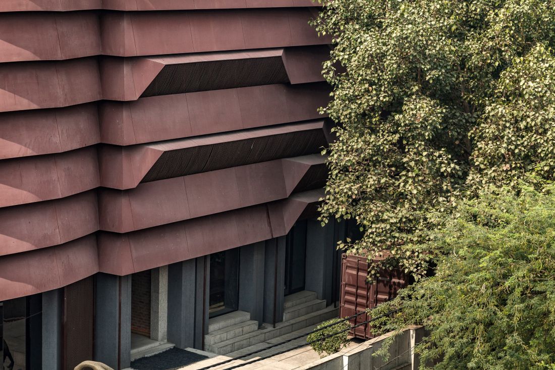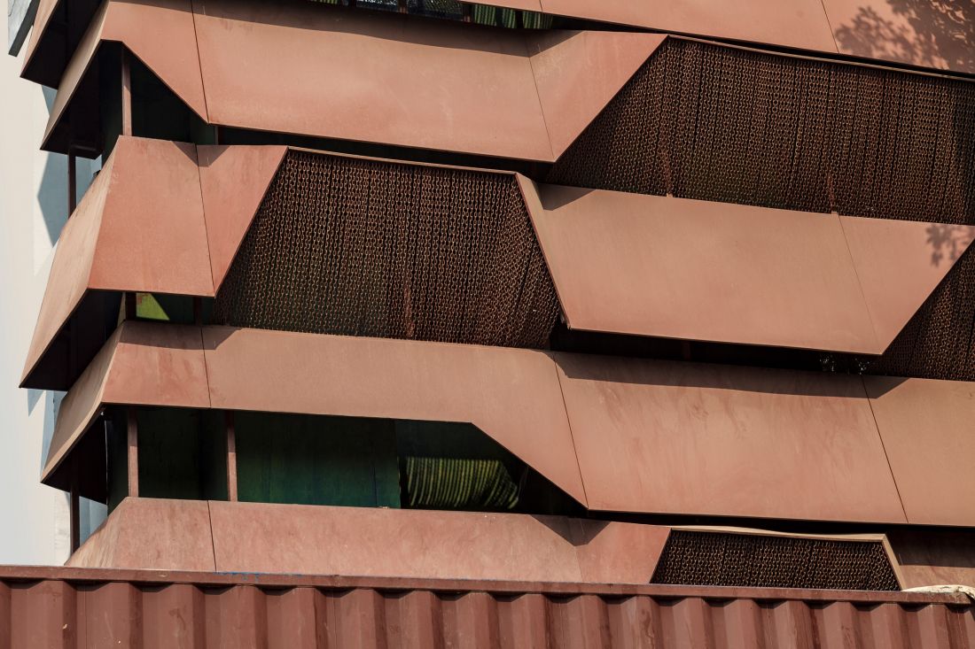 Với mục đích tạo ra một công trình có thể đối phó với thời tiết khắc nghiệt của địa phương nơi đây thì tòa nhà 3 tầng này ra đời như một lẽ đó, khi được bao bọc bên ngoài một lớp vỏ thép Corten thành dải băng khá ấn tượng.