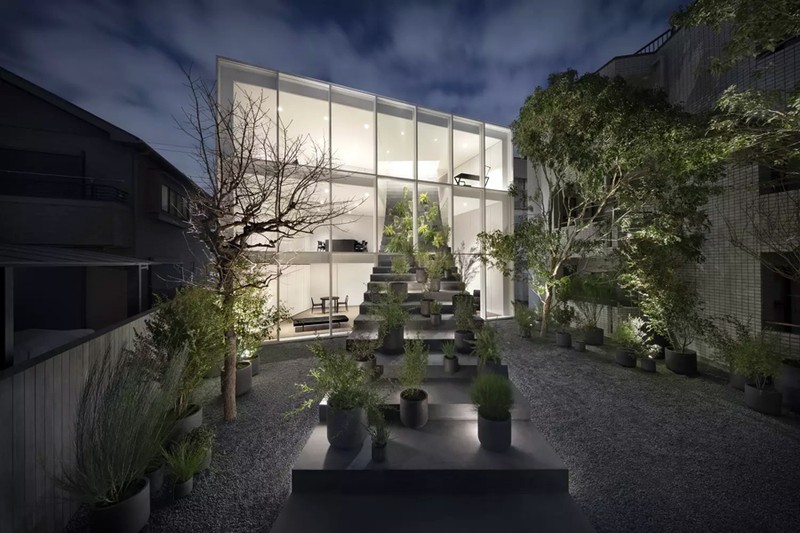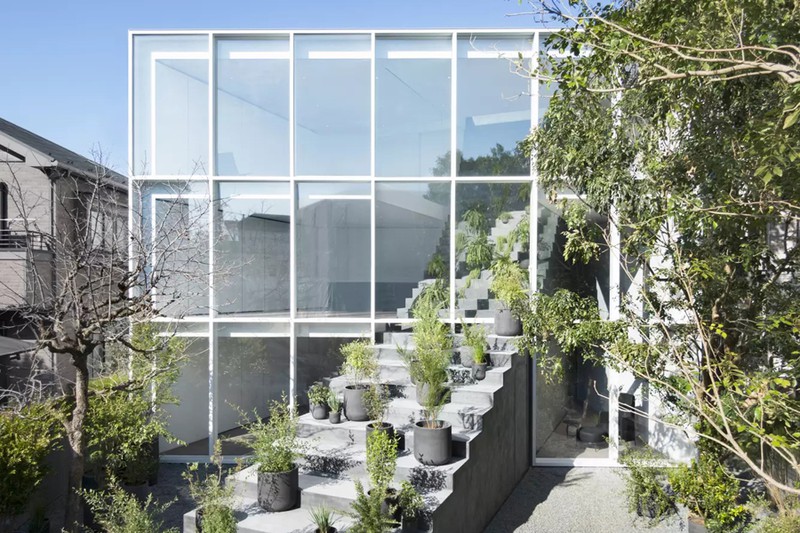 Rất nhiều cây xanh được bày biện trên cầu thang, điều này làm cho ngôi nhà với thiên nhiên trở nên hòa quyện cũng như nâng cao được giá trị thẩm mỹ.