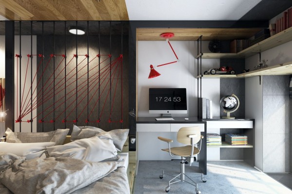 Lợi thế của căn hộ này là vòm trần nhà cao hơn 5m để có thể bài trí giường ngủ tách biệt khỏi không gian sinh hoạt.