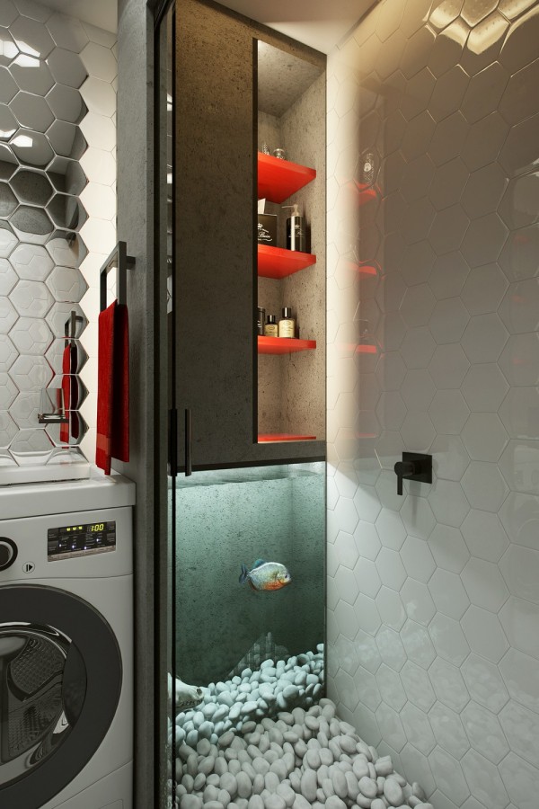 Và tất nhiên với diện tích hạn chế, phòng tắm trong căn hộ cũng rất nhỏ nhưng vẫn đủ để một máy giặt.