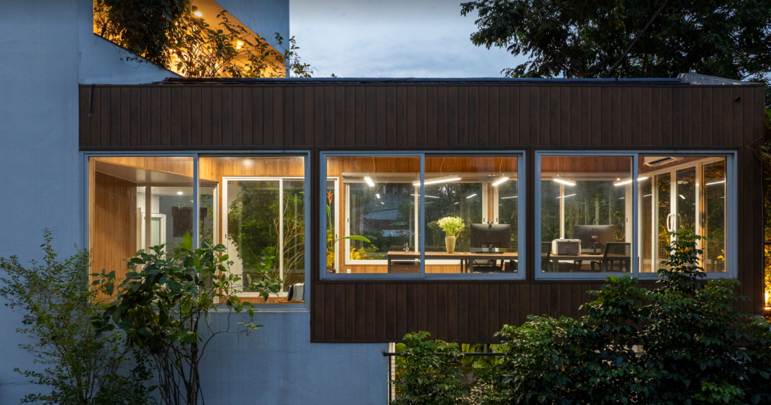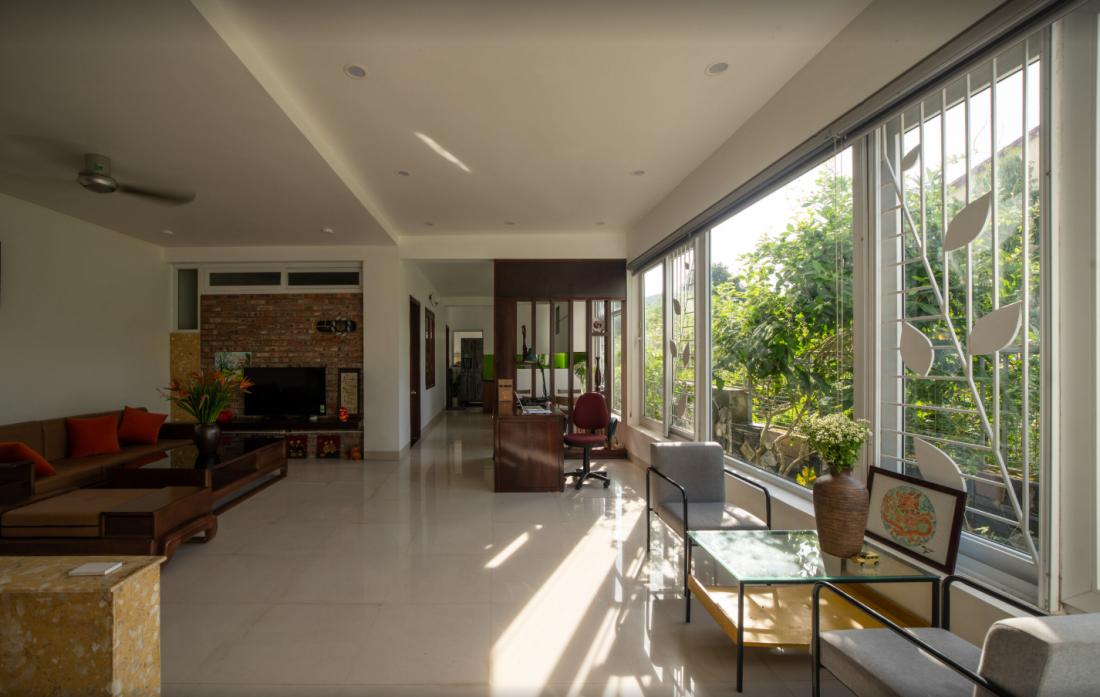 Những ô cửa sổ lớn, không gian mở và khu vườn cao được bố trí khéo léo để tận dụng tối đa cảnh quan. Đứng đây, bạn có thể ngắm panorama tuyệt đẹp, cảm nhận làn gió mát lành từ núi thổi qua, hay ánh nắng dịu dàng len lỏi vào nhà. Mỗi góc đều như một bức tranh sống động hòa mình vào thiên nhiên.