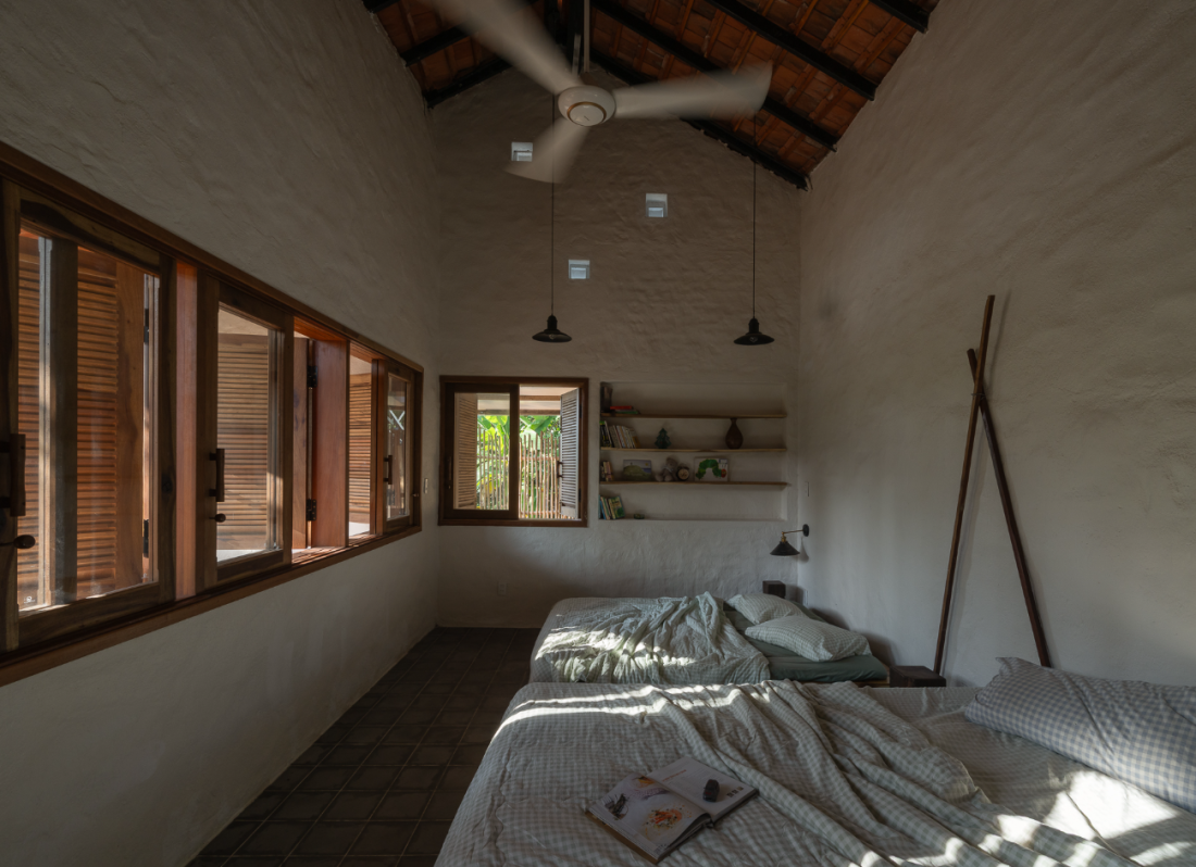 Các phòng ngủ kín đáo nhưng thoáng đãng, với cửa sổ hướng vườn mang lại cảm giác yên bình. Phòng ngủ chính còn có lối ra hiên riêng, như một cổng bí mật dẫn bạn đến khu vườn sau, nơi tiếng ếch kêu ban đêm ru bạn vào giấc ngủ.