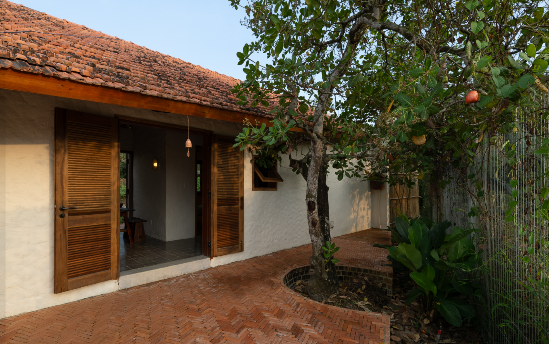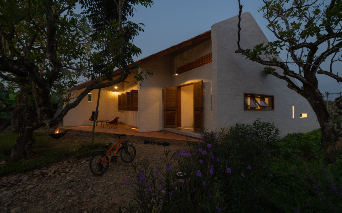 Ngay từ đầu, gia chủ – một gia đình trẻ yêu thiên nhiên – đã đặt ra mục tiêu rõ ràng: không một cái rễ hay cành cây nào bị tổn hại. Đây không chỉ là chốn nghỉ ngơi cuối tuần, mà còn là nơi để tránh xa nhịp sống ồn ào, đồng thời thử nghiệm mô hình homestay ngắn hạn, mang đến trải nghiệm sống tối giản gần gũi với đất trời.