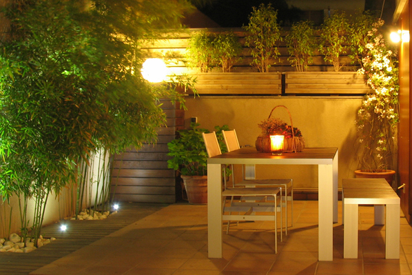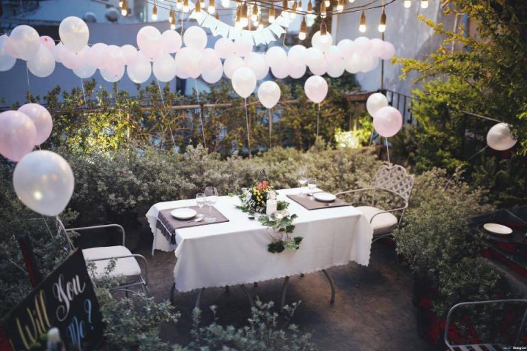 Bạn có thể thiết kế sân thượng thành không gian hẹn hò đầy lãng mạn của hai người đang yêu nhau hoặc cho vợ chồng trẻ. Với bộ bàn ghế đơn giản cùng vài chiếc bóng bay và ánh đèn lấp lánh, hoa cỏ đã trở nên lãng mạn vô cùng.
