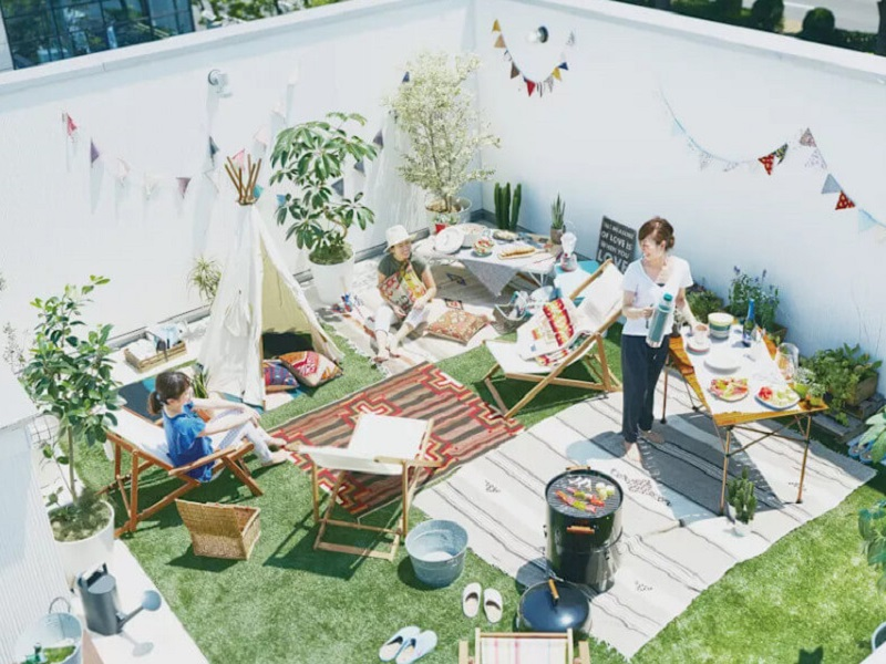 Bạn có thể biến sân thượng thành nơi tổ chức picnic tại gia cùng người thân và bạn bè. Chỉ cần trang trí một chút và chuẩn bị là bạn đã có một ngày vui vẻ cũng mọi người tại nhà mà không cần phải đi đâu xa.