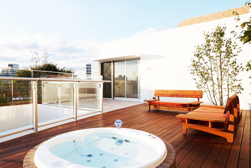 Thiết kế trên sân thượng một bồn tắm nước nóng để thư giãn đây đúng là một không gian tuyệt vời cho bạn ngâm mình.