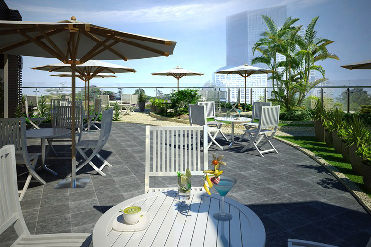 Sân thượng trở thành không gian để tiếp đón khách, cùng nhau ngồi nhâm nhi những ly trà hay café. Bạn chỉ cần thêm một bộ bàn ghế và thiết kế mái che bằng kính, là có thể thoải mái ngắm bầu trời, bạn cũng có thể trang trí thêm những chậu hoa nhỏ.