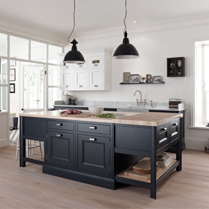 Với màu đen, căn bếp này lại tạo ra được chiều sâu của nó khi đối lập với bức tường màu trắng và sàn nhà gỗ.