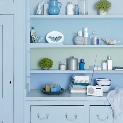 Với màu xanh - màu trung tính tuyệt vời để tạo không gian, bạn sẽ thấy tươi mát khi vào căn bếp này. Sử dụng gạch ốp tường độc đáo với hoa văn.