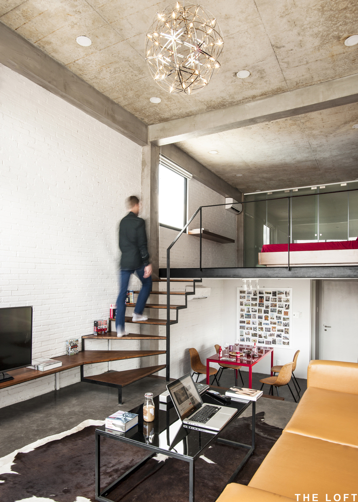 Căn hộ nằm trên tầng 6 là căn hộ có một gác lửng được thiết kế theo phong cách công nghiệp và nguyên liệu, đây cũng là căn hộ khiến ta gợi nhớ đến gác xếp những năm 1950 ở New York.