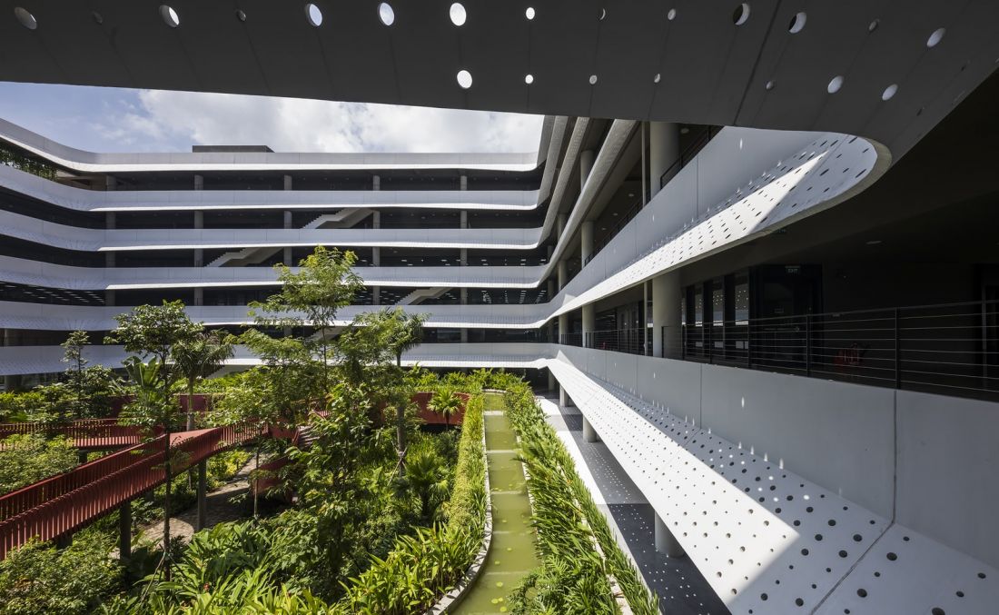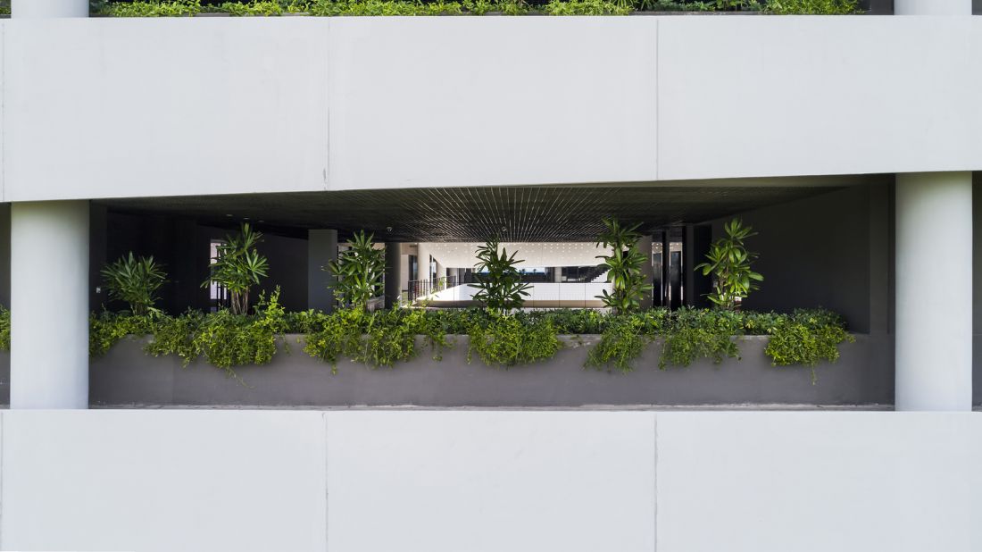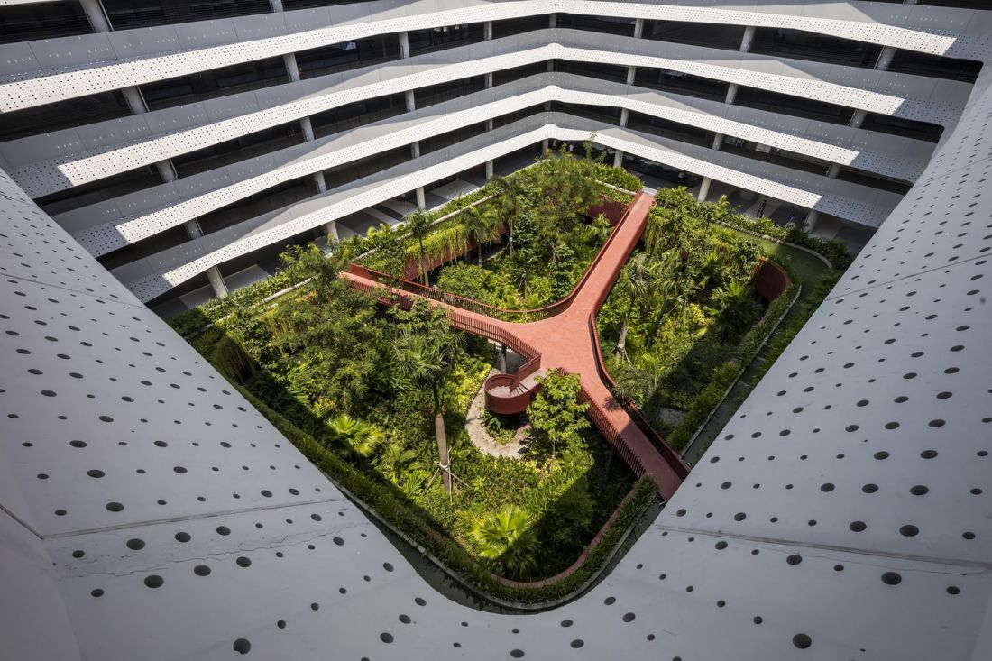 Với sự phân bổ chức năng hợp lý, kết cấu chịu lực cao nên đã giúp tối đa hóa việc bố trí mặt bằng một cách thông minh và giải pháp không gian nội thất linh hoạt. Lối đi lưu thông hiện hữu và khu vực thư giãn đều xen kẽ những khu vườn trên cao tại mỗi tầng.