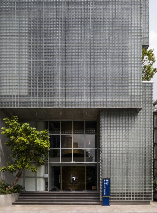 Khối kính dày được sử dụng như một vật liệu làm giảm truyền nhiệt khi nhiệt độ bên ngoài tăng đồng thời cũng giúp tiêu thụ năng lượng thấp so với các chất liệu ốp dành cho mặt tiền thông thường.