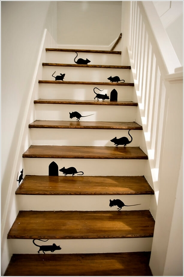 Dán decals tạo hình những chú chuột ngộ nghĩnh trên những bậc cầu thang.