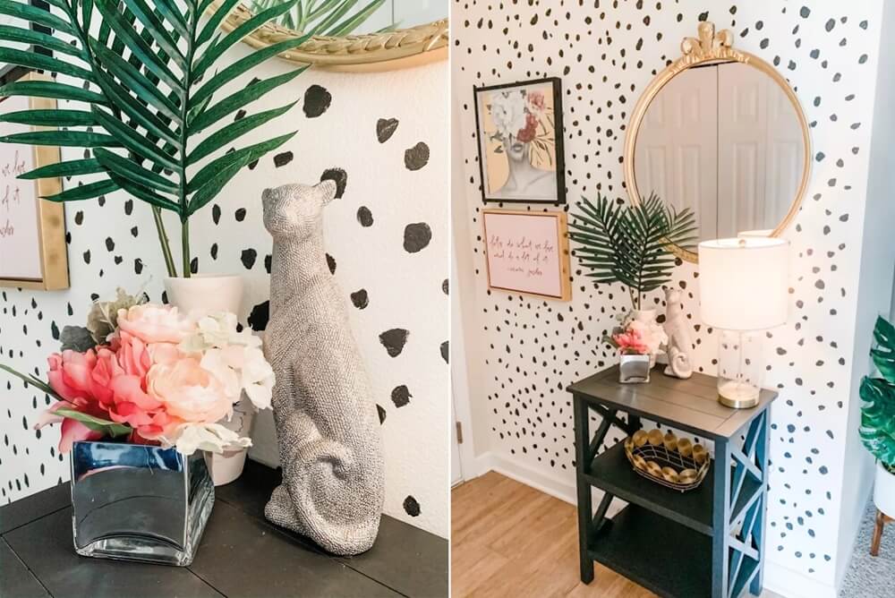 Trên bức tường trắng nhàm chán bạn có thể thử với họa tiết đốm bằng sơn đen.