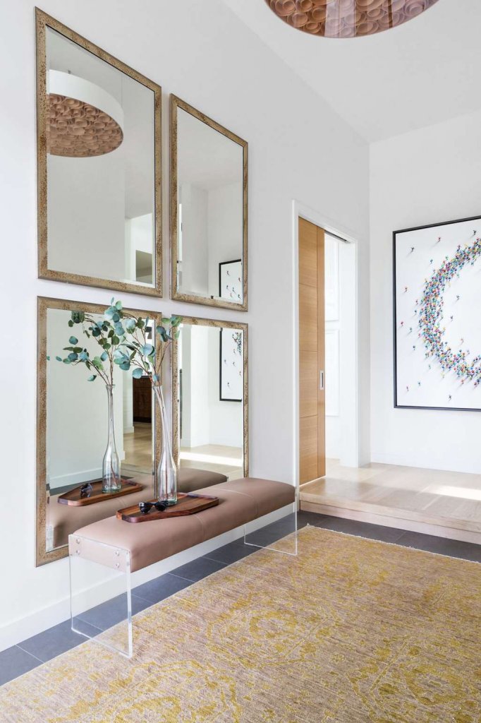 Tạo một vẻ ngoài hào nhoáng đầy tinh tế với bốn khung gương lớn với đường viền tối giản. Thêm gương trang trí giúp cho không gian nhà bạn trở nên rộng lớn hơn rất nhiều.