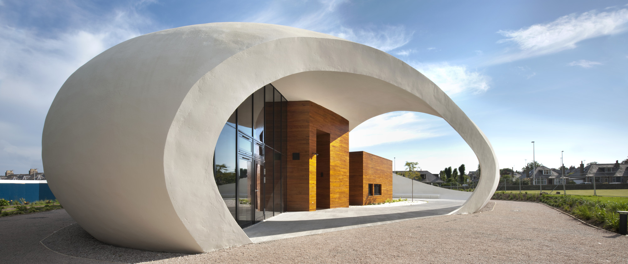 Toàn bộ phần mái làm hoàn toàn từ chất liệu xây dựng bền vững với thời tiết, được thiết kế xây dựng tại Thành phố Aberdeen, Vương quốc Anh.