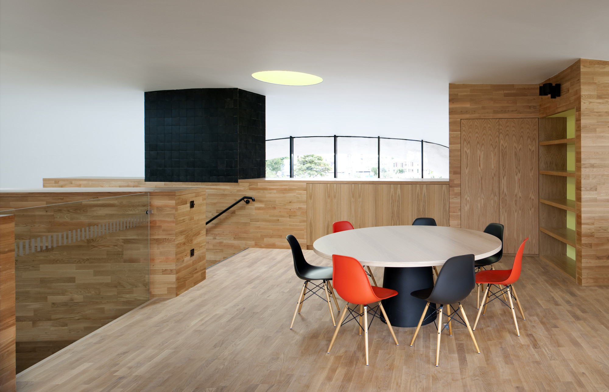 Bên trong quả trứng này là các không gian làm bằng gỗ, thiết kế dạng mở, thoáng đãng, khoa học.