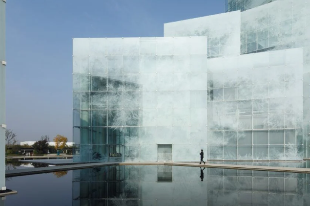 Vào ban ngày, sự xuất hiện của các tấm kính thay đổi tùy thuộc vào điều kiện ánh sáng, để lộ một số khu vực bên trong và che giấu những khu vực khác.