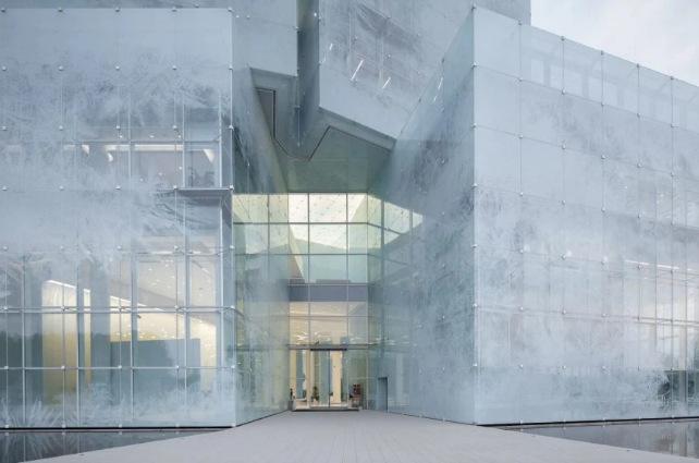 Việc sử dụng các tấm kính in được gắn vào các cấu trúc bê tông với sự cố định kim loại đã mang lại sự độc đáo cho công trình này.
