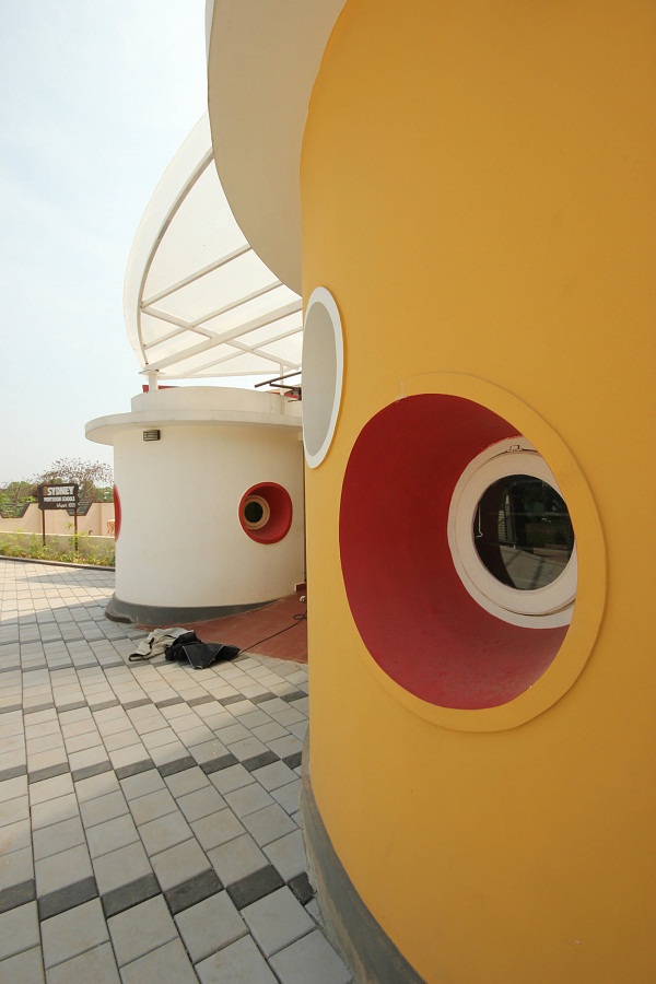 Nhìn một cách hình dung hóa, ngôi trường bao gồm các cấu trúc hình học, hình thú có mắt kỳ quái, góp phần kích thích thị giác của đứa trẻ.