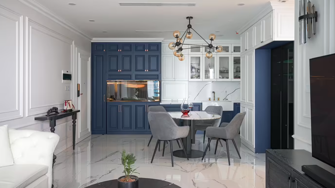 Thiết kế căn hộ hiện đại với gam màu xanh – trắng thanh lịch tại TP.HCM