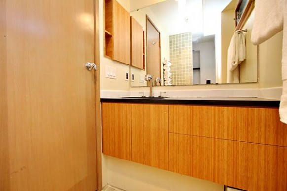 Nhiều đồ nội thất cùng sàn và trần nhà được lát gỗ.