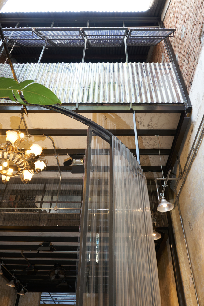 Sau khi nghiên cứu, kiến trúc sư đã quyết định tăng cường thêm không gian làm việc ở tầng trên bằng cách gia cố thêm 1 lớp đệm thép dưới trần xi măng cũ.