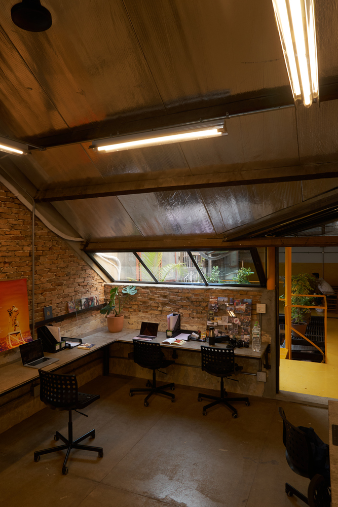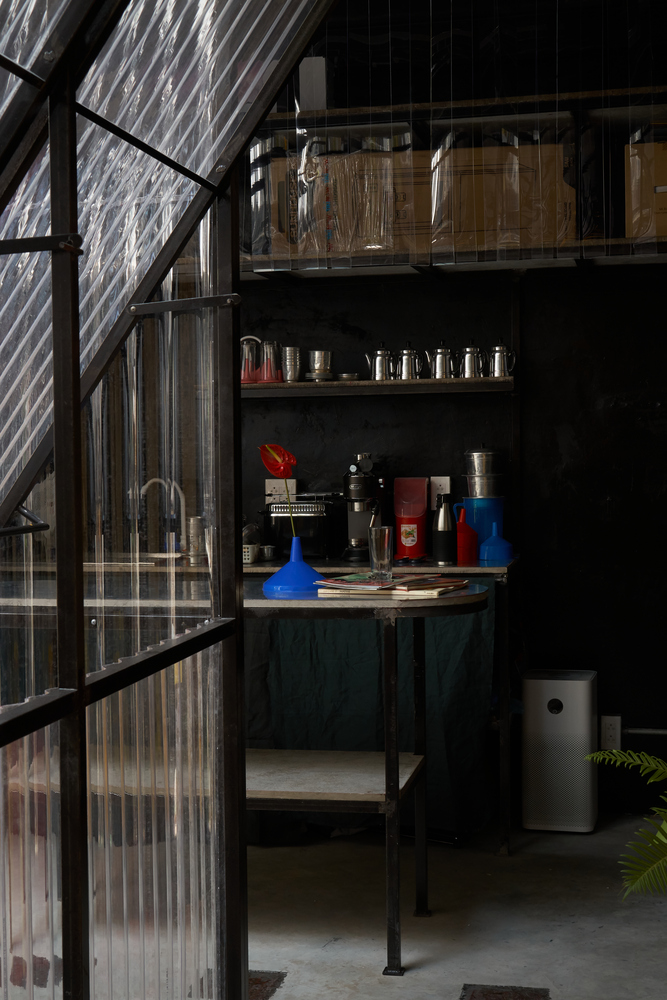 Không gian đa chức năng nằm dưới không gian làm việc chính được ngăn bằng tấm polycarbonate có khả năng đóng mở thuận tiện, phía sau không gian là nhà bếp, quầy bar nhỏ và phòng vệ sinh.