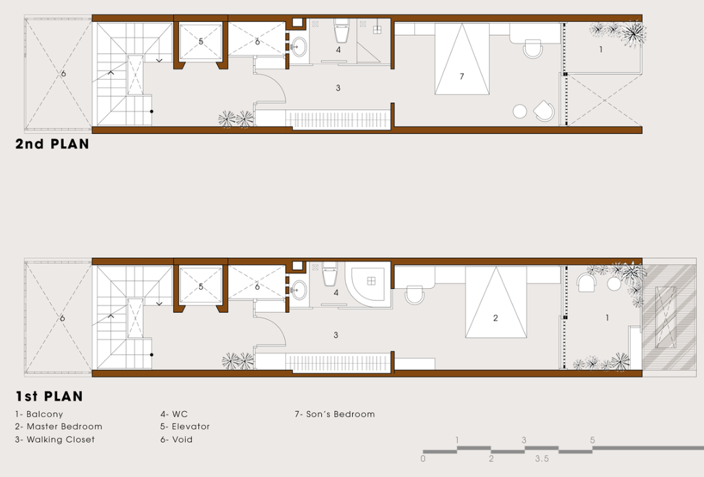 Vị trí: ngôi nhà nép mình trong con hẻm đông dân cư ở Quận 7 trên mảnh đất có chiều dài gấp 5 lần chiều ngang. Chủ nhân của ngôi nhà muốn có nhiều không gian thư giãn để cafe, đọc sách, trò chuyện cùng nhau với một không gian thoáng đãng và sáng sủa có cả hồ bơi, thang máy và chỗ để xe. Tuy nhiên với diện tích 59.5m2 thì sẽ là bài toán nan giải cho kiến trúc sư.