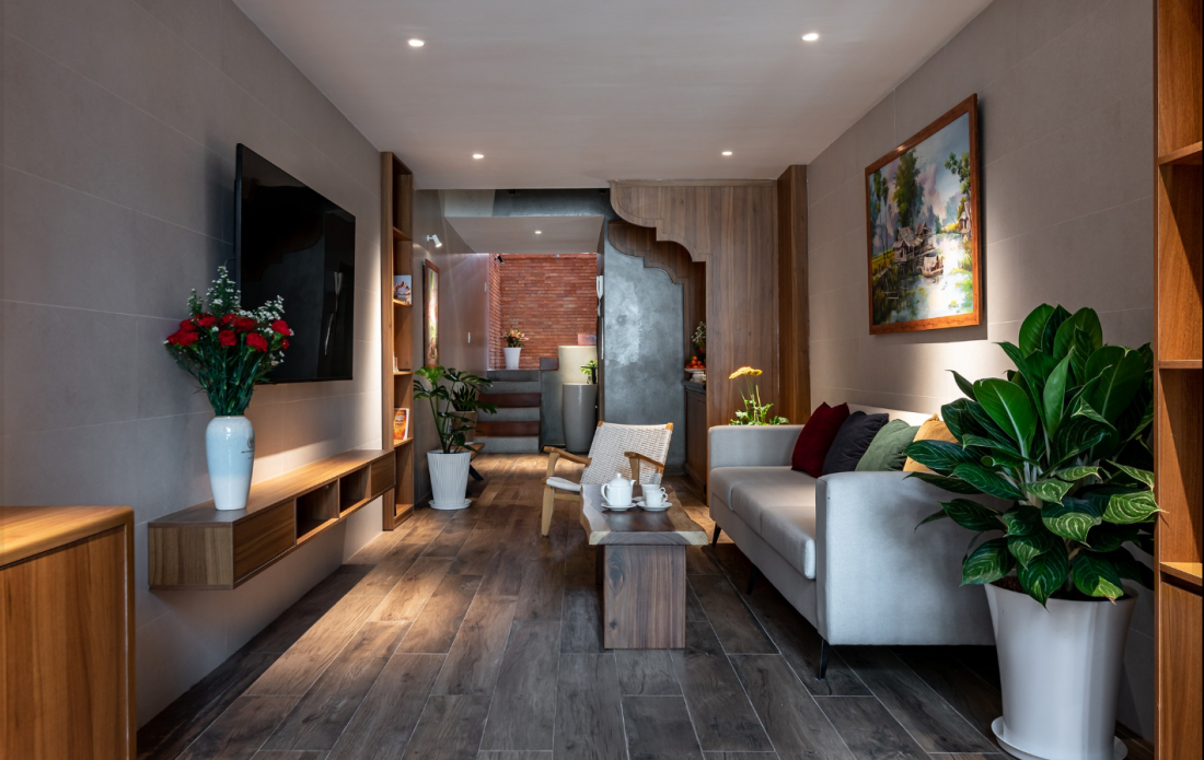 Giải pháp là ngôi nhà 1 trệt 1 lửng 4 tầng được thiết kế theo phong cách kiến trúc hiện đại nhưng vẫn đảm bảo công năng nhu cầu sử dụng.