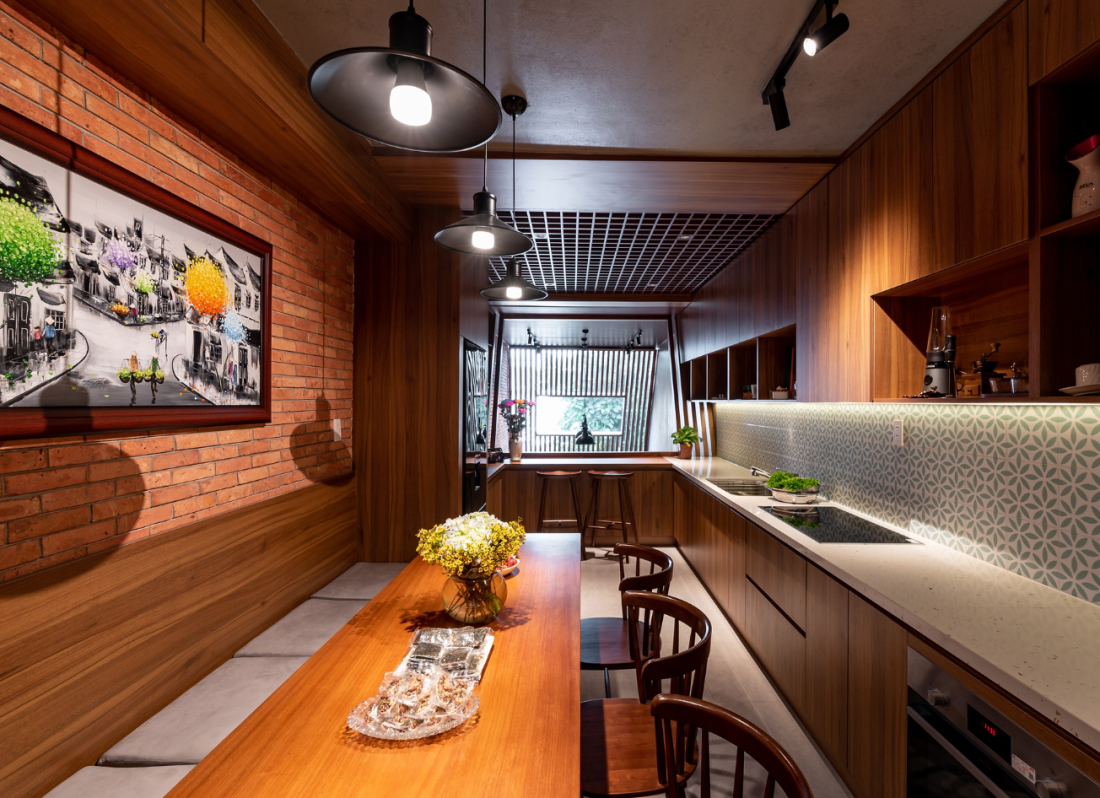 Một góc bếp và bàn ăn mang đến cảm giác ấm cúng cho các thành viên.