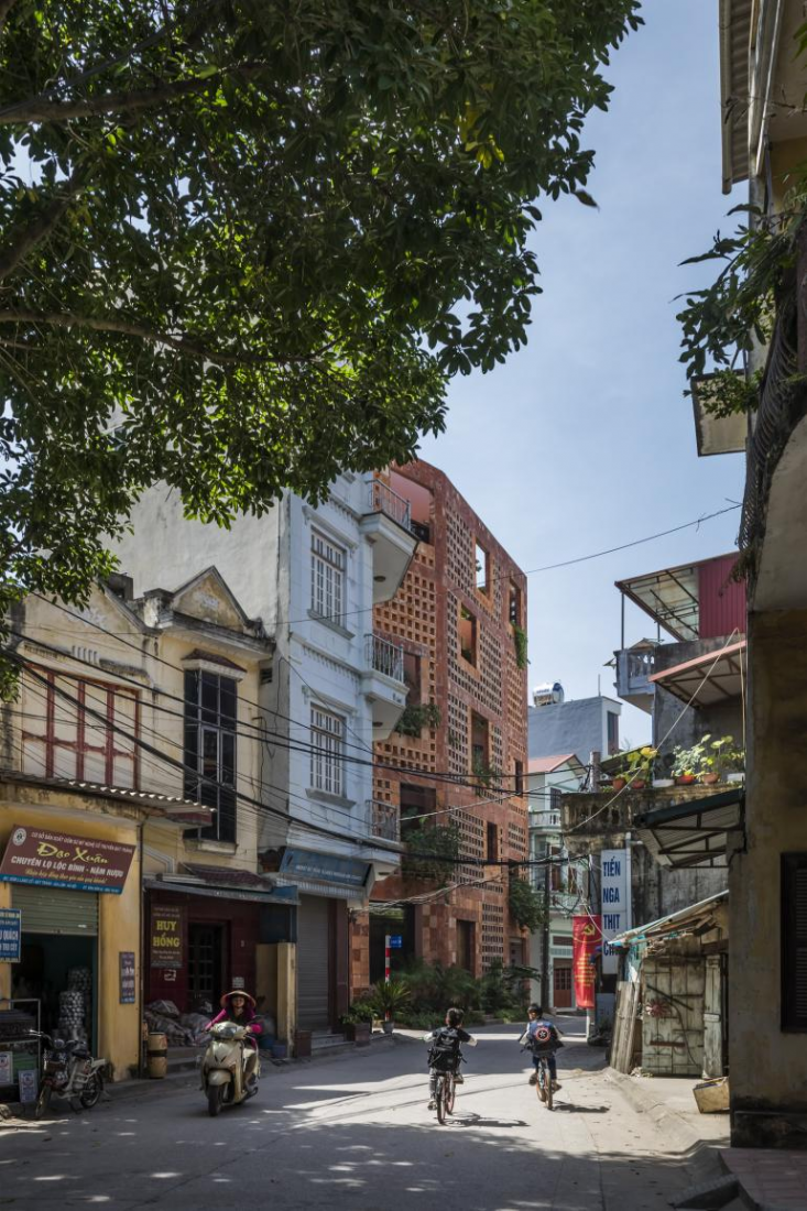 Bát Tràng, một làng nghề gốm sứ cách thủ đô Hà Nội, Việt Nam chưa đầy 15 km, hình thành từ thế kỷ 14. Hầu hết các gia đình trong làng vẫn làm nghề buôn bán gốm sứ và nhiều gia đình đã thành công trong xuất khẩu sản phẩm sang Nhật Bản và châu Âu. KTS Nghĩa đã thể hiện rõ đặc trưng di sản làng nghề trong kiến trúc ngôi nhà Bát Tràng này, với các bức tường bằng gạch men đất sét đỏ đục lỗ.