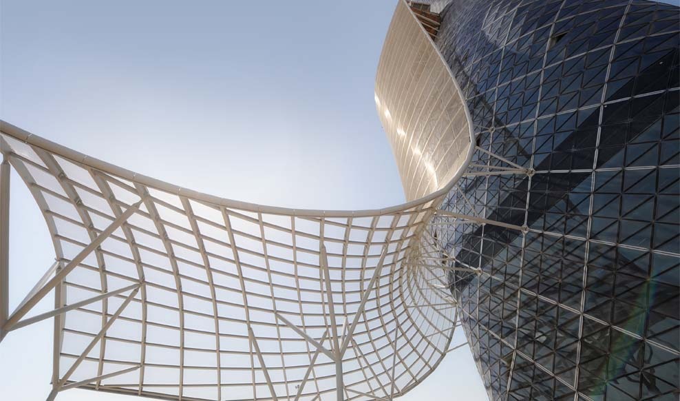 Nó là một khối kiến trúc được tạo nên từ một bộ khung thép, dưới nền công trình đã khoan sâu và đóng chặt 490 cọc bê tông ở độ sâu khoảng 30 mét. Theo các kiến trúc sư, với cách xây móng ở thông số như thế này thì mới đảm bảo khả năng chịu lực bền vững cho khối thép khổng lồ cũng như toàn bộ chỉnh thể công trình khi nó đi vào hoạt động.