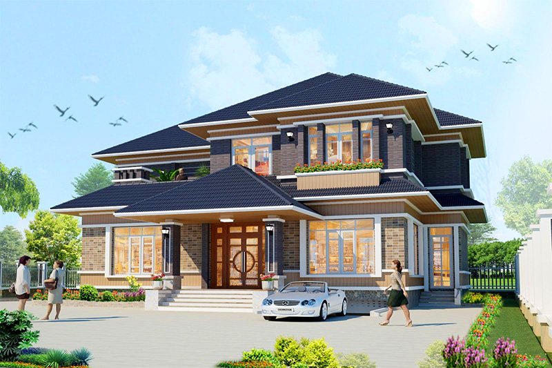 Mẫu biệt thự 2 tầng mái chéo hoặc mái lệch hiện đại mang đến một không gian sống lý tưởng với không gian bên trong được bố trí theo yêu cầu cũng như sở thích riêng của từng thành viên trong gia đình.